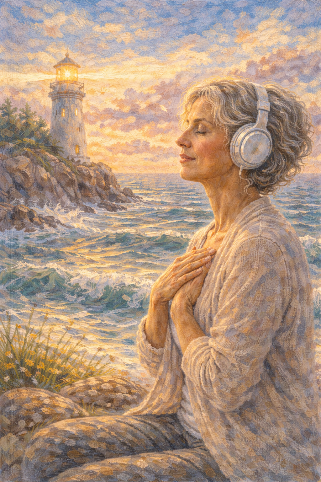 For a deeper, more immersive experience, headphones are recommended. The layered guidance and imagery are designed to help you fully embody the lighthouse metaphor and anchor the feeling of steady presence.